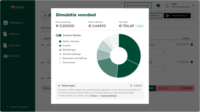 Geen gedoe of bergen werk, want daar heb je Creative Shelter voor. Jij factureert je creatieve prestaties en wij doen rest. Meer geld op jouw rekening? Check.